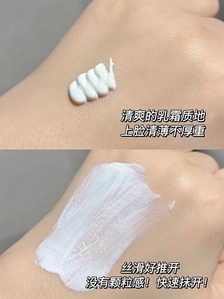 • 清爽质地,上脸不油腻,快速成膜,不易闷痘不假白