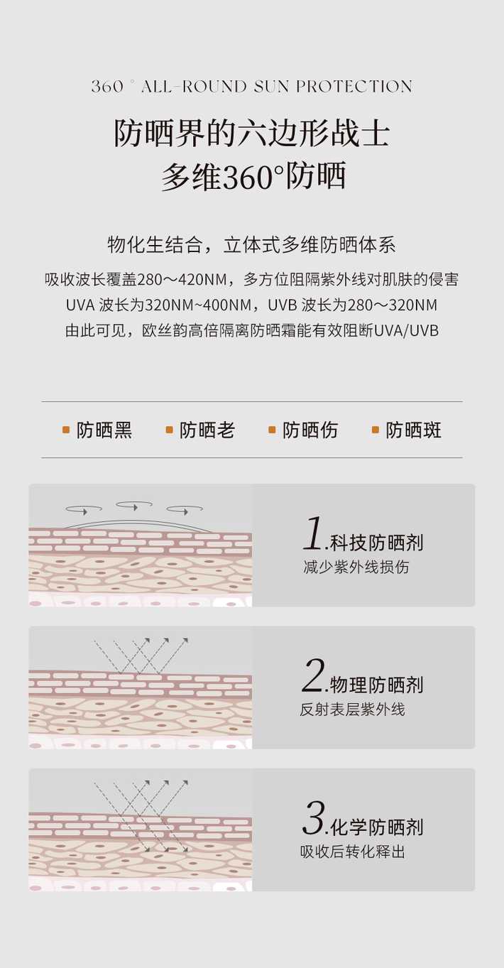 • 物理防晒与化学防晒相结合,有助于抵御紫外线损伤