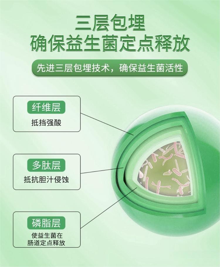 ·先进三层包埋技术,能使益生菌在肠道定点释放
