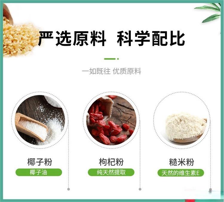 ·科学配比,糙米粉改善血液循环,促进新陈代谢;枸杞粉促进吸收