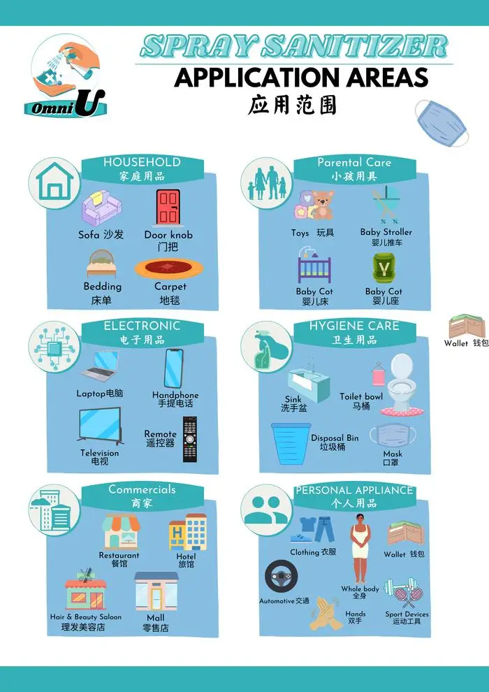 OmniU NO ALCOHOL Multipurpose Sanitising Spray (1 x 500 ml) 全面喷消毒(无酒精)